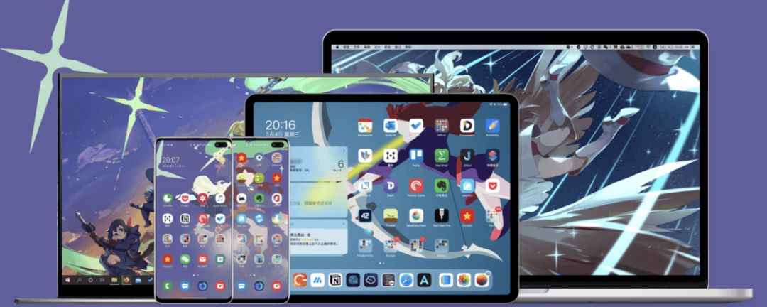 坚持以使用频率为主,以功能类别为辅的指导思想,常打开的放主屏,频次低的扫进文件夹;贯彻落实「手机主屏不超两页,电脑主屏不留文件」的极简精神,新安装应用分门别类收纳,定期卸载吃灰应用,电脑桌面及时整理;发挥扳机厨的带头作用,所有设备使用《小魔女学园》壁纸,并针对手机主屏图标多的现状,对壁纸底部进行高斯模糊处理✨