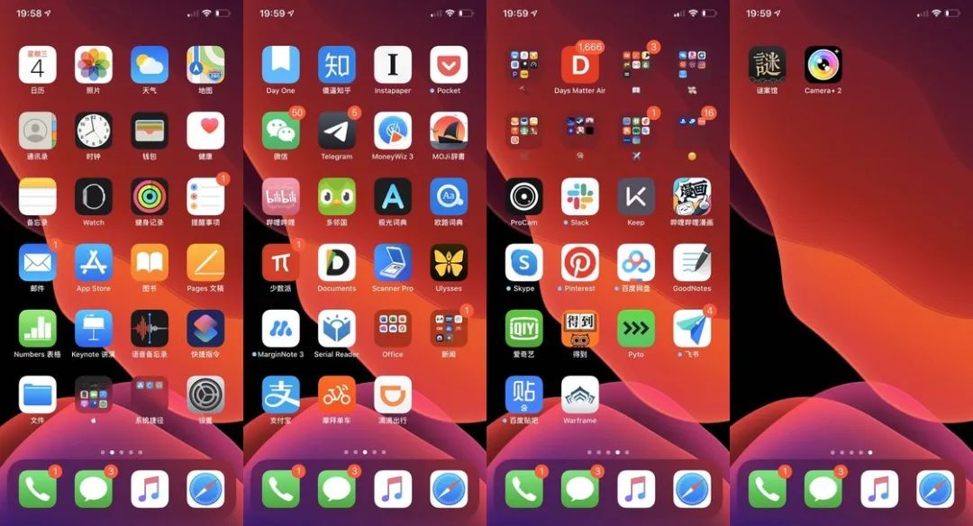 iPhone:第一屏全放第一方 App,第二屏放最常用的 App,第三屏是垃圾场和崩坏 3。实践下来,也就能用到这么多,不禁对这个 256G 的存储产生了疑问。