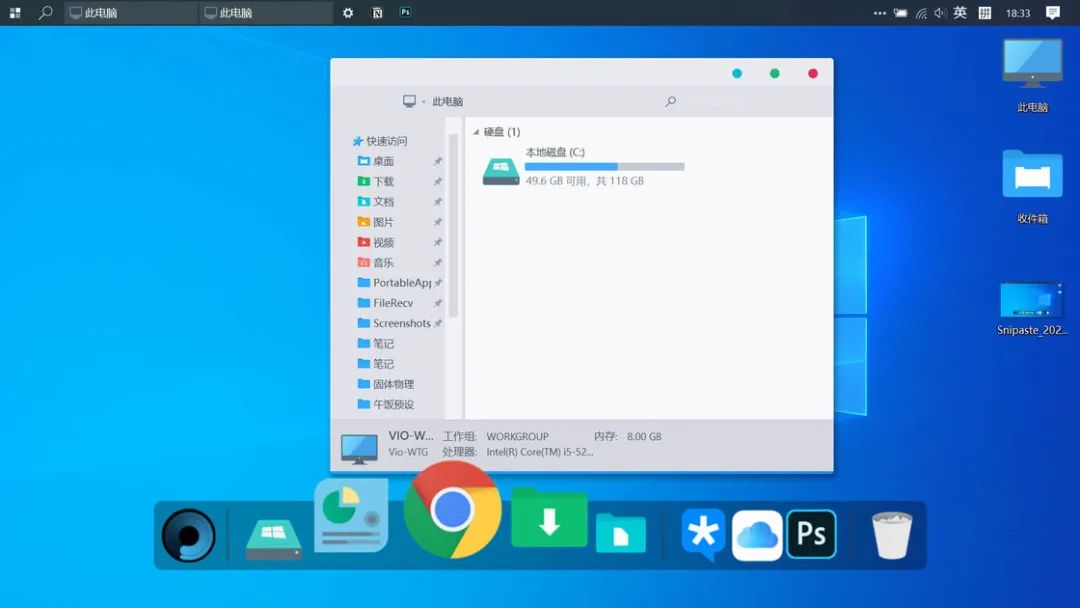 对于桌面操作系统来说,玩法就多了。mac 机器不在手边所以截不了图,不过思路和 Windows 都是相通的,就是 桌面只放一个「收件箱」文件夹。 图标最多的时候也就只有「此电脑、收件箱、控制面板、回收站」这四个。后来我也一直认为,这是我桌面能够一直保持干净整洁的主要因素。