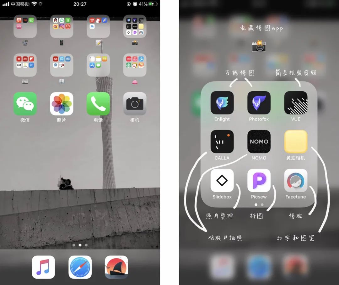 刻意将容易沉迷的 App 与不太常用的 App 按类别放入文件夹,确保打开手机的第一眼不看到这些时间黑洞。