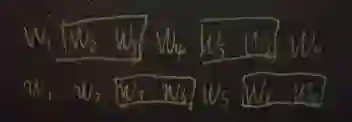 基于典型相关分析的词向量的核心思想,它认为一段文字中某个词的左右两边指定长度的窗口内的词组应该具有关联,也就是说某个词的左边若干单词组成上文,右边若干单词组成下文,从而应该让上下文的关系尽可能紧密。如图,假设窗口大小为2,则 w4 的左右两窗口包含的词组为上下文,类似的 w5 也有对应的上下文,每个词都有一个对应的词向量,那么要做的事就是最大化上下文两个矩阵的协方差。