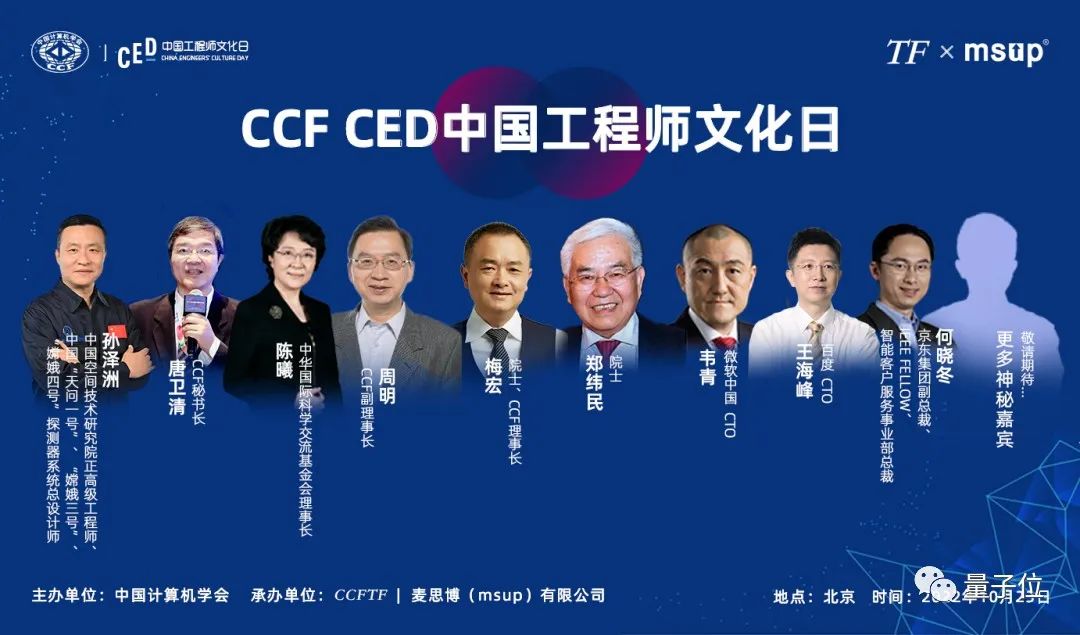 “第二届1024中国工程师文化日CCF CED 2022”,将在 10月 23日北京召开。该技术文化与品牌盛会由CCF主办、麦思博(msup)有限公司承办,将围绕“工程师文化驱动创新”主题,汇聚全球技术大咖和CTO。本期的主要日程如下:
