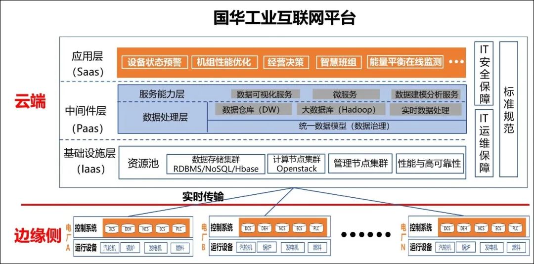 国华工业互联网平台,结合各火电厂自动化、信息化现状,将已接入控制系统的发电机组设备传感器信号通过接口机、网关接入工业互联网平台;还通过无线传输方式将设备信息接入平台,实现平台的充分感知,打通各电厂信息“孤岛”的局面。