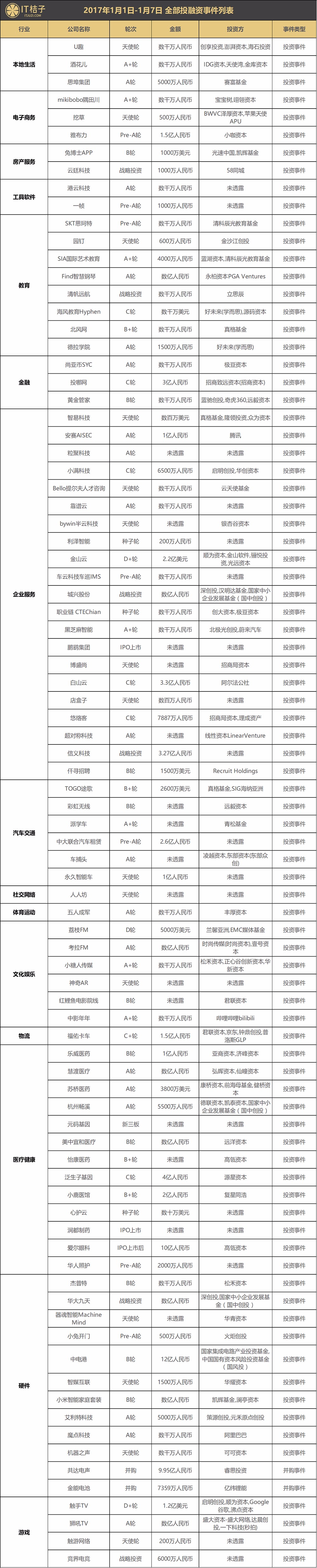 上周全部融资事件列表如下:(点击图片可放大查看)