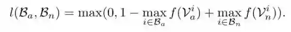 此处即指,在训练中对于正包和负包都只使用分数最大的样本来训练。具体而言,正包中分数最大的样本最可能是正样本,而负包中分数最大的样本则被认为是 hard negative,即难例。基于此式,为了让正负样本之间的距离尽可能远,作者采用了 hinge-loss 的形式。