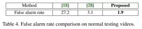 在监控任务场景中,一个可靠的系统应该具备较高的召回率和较低的误报率,作者比较了0.5阈值下的误报率,也具备不错的效果。