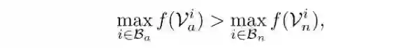 此处 Va 和 Vn 分别为异常和通常样本,f则为模型预测函数。由于在 MIL 中,并不知道正包中每个样本的真实标签,所以采用以下的形式: