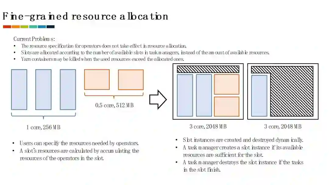 资源调度相关:我们对Flink的资源调度,特别是在Yarn集群上的资源调度进行了重构,以提供更好的资源使用率。同时,我们也正在研究如何使用分布式和异步的资源调度框架来提高超大并发度的作业的资源调度效率。