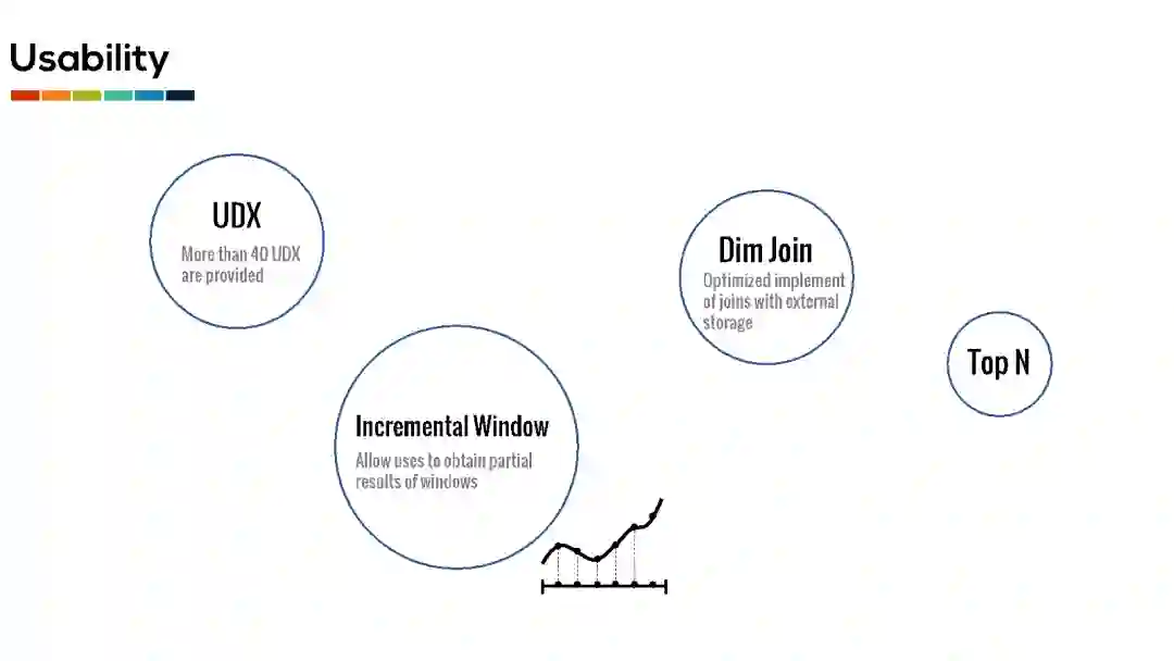 可用性相关:我们在Flink中提供了多个算子,包括local keyby, incremental windows, dim join等。这些算子能够很好的提高用户开发程序的效率和程序执行的性能。