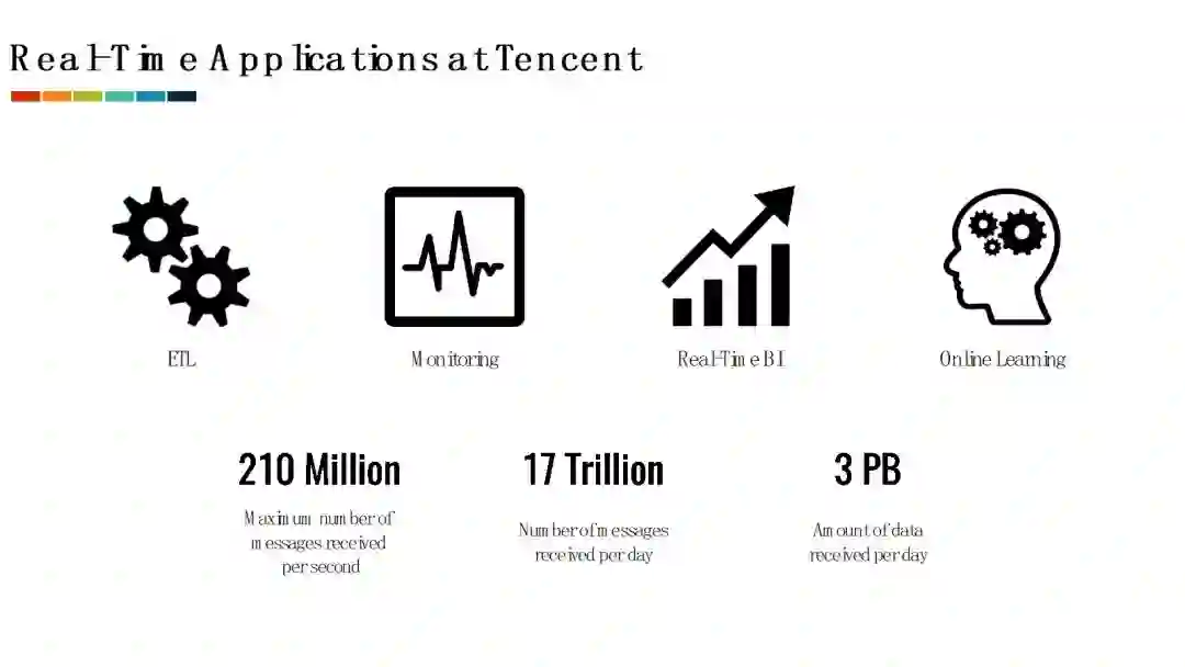 目前腾讯的实时计算的规模已经十分庞大。数据平台部实时计算团队每天需要处理超过了17万亿条数据,其中每秒接入的数据峰值达到了2.1亿条。