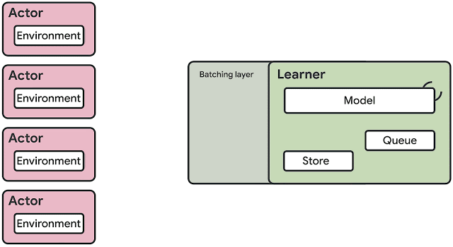 在当前的DRL架构中,IMPALA为该领域树立了新标准。IMPALA最初是由DeepMind在2018年的一篇研究论文中提出的,它引入了一种模型,利用专门的数值计算加速器,充分发挥了监督学习早已享有多年的速度和效率。IMPALA的核心是角色模型(Actor model),常常用于最大化并发和并行。
