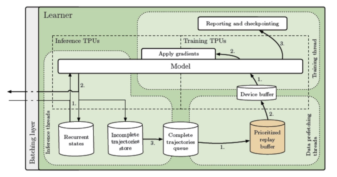在现实世界中实现DRL模型的难度与它们的架构有着直接的关系。本质上,DRL包含各种任务,例如运行环境、模型推断、模型训练或重放缓冲等等。大多数现代DRL架构都无法有效地分配这类任务的计算资源,从而导致实现成本不合理。在AI硬件加速器等组件的帮助下,我们已经克服了其中的一些限制,但仍然很有限。近年来出现的新架构已被市场上许多成功的DRL实现所采用。