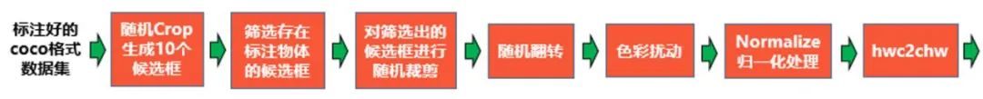 标注好的数据无法直接用于训练,因此,在拿到标注好的数据后,MindSpore 团队首先会对其进行数据清洗的工作,从中审查和纠正出「脏」数据,然后再开发一套格式转换工具,将标注数据的格式转换为训练可用的 COCO 数据集格式。通常,这样的数据仍存在一些不规则的地方,在训练前还需要对其进行一系列的数据预处理操作,再喂给模型进行训练。目前,这些数据预处理方法都是基于 MindSpore 提供的接口实现的,感兴趣的开发者可以详细阅读 MindSpore 的 API 文档。
