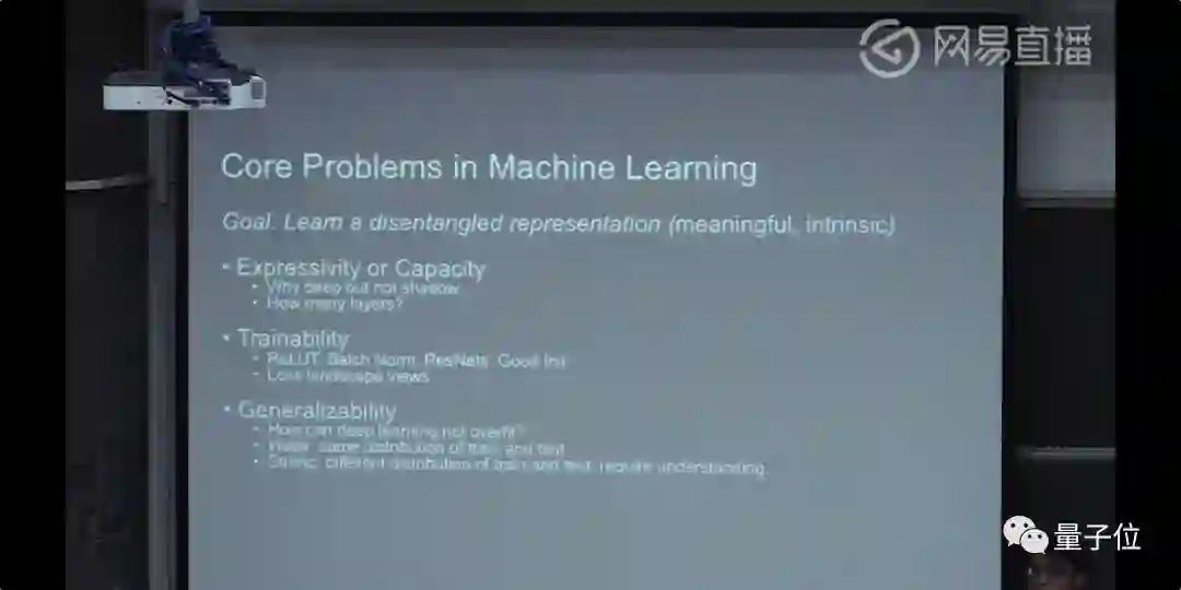 第三个问题是推广能力的问题,推广能力的问题又分成两类:弱推广能力和强推广能力。机器学习研究的基本问题是:训练数据和测试数据的统计是同分布的。弱推广能力是指,如果训练数据和测试数据不同分布,就不管了。强推广能力是指,真正理解了这件事情的表示,遇到新的训练数据集统计、分布和训练数据集,也可以去做。
