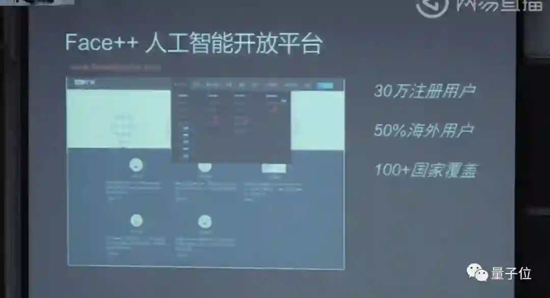 Face++前几年做了一个人工智能开放平台,把我们很多这样的能力都开放出来,放到云上,这个比微软、谷歌都更早一步。目前有几十万的开发者用户来使用这样的服务,超过一半的用户都是海外用户。