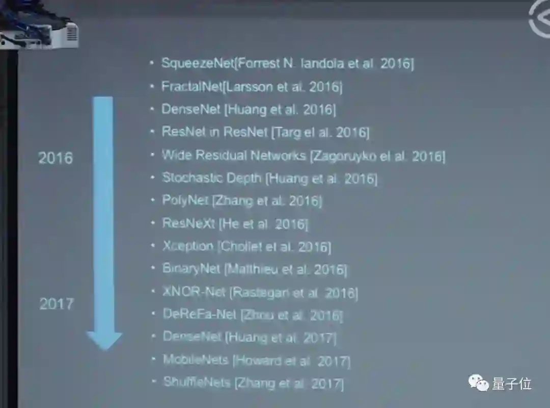 这是视觉识别常用的从2012年到2016年的网络结构,表现出了图像分类很大的变化,最近的新趋势是大家逐渐开始用机器来设计这些网络结构。