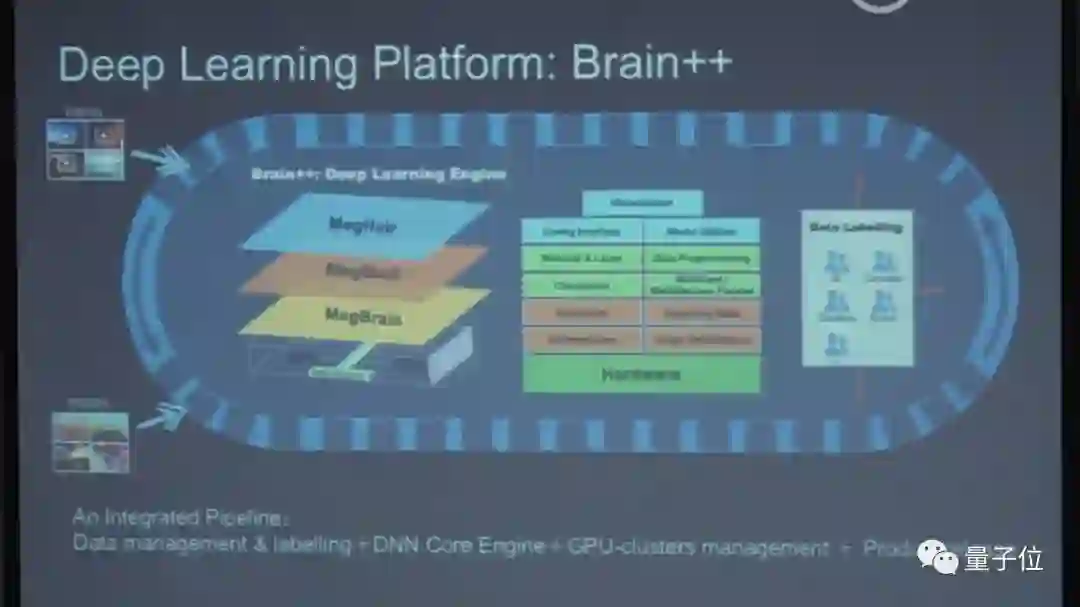 今天的GPU、CPU,不管在云上还是在端上带来很多变化,我们也很早就注意这方面的变化。Face++做了一个Brain++的一条系统,Brain++是指如果想训练神经网络,需要有一个GPU集群,然后需要有扩大的系统来管理这些软件,中间要有一个叫深度学习框架,比如TensorFlow,而我们做了一套叫Brain++,这是我们自己研制的深度学习框架。