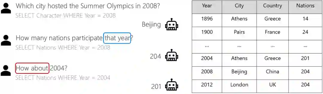 对话中的多轮问答(conversational question answering)和语义分析(semantic parsing)是自然语言处理领域的两个核心问题,对语音助手、聊天机器人和搜索引擎等应用都至关重要[2]。