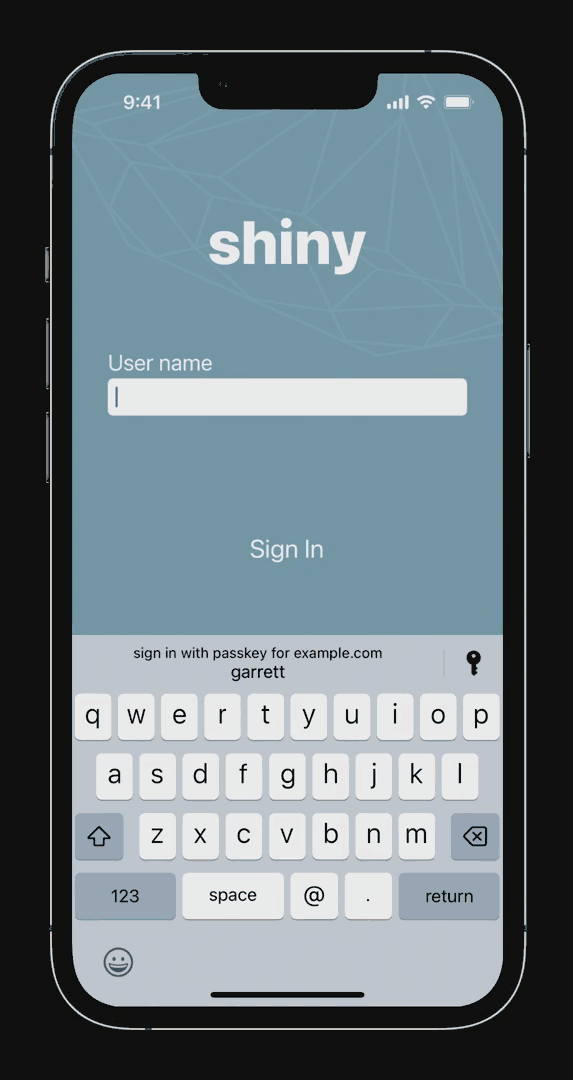 目前完整支持通行密钥的应用程序还不多,但我们可以从 WWDC 后续面向开发者的视频中窥探到通行密钥的使用方式。登录界面中只需要用户提供用户名(User name)这一信息,然后点击登录按钮,最后完成生物认证便能完成登录。使用通行密钥整个过程,就和我们目前使用 iCloud 钥匙串或是支持自动填充的密码管理器一样自然、直观。