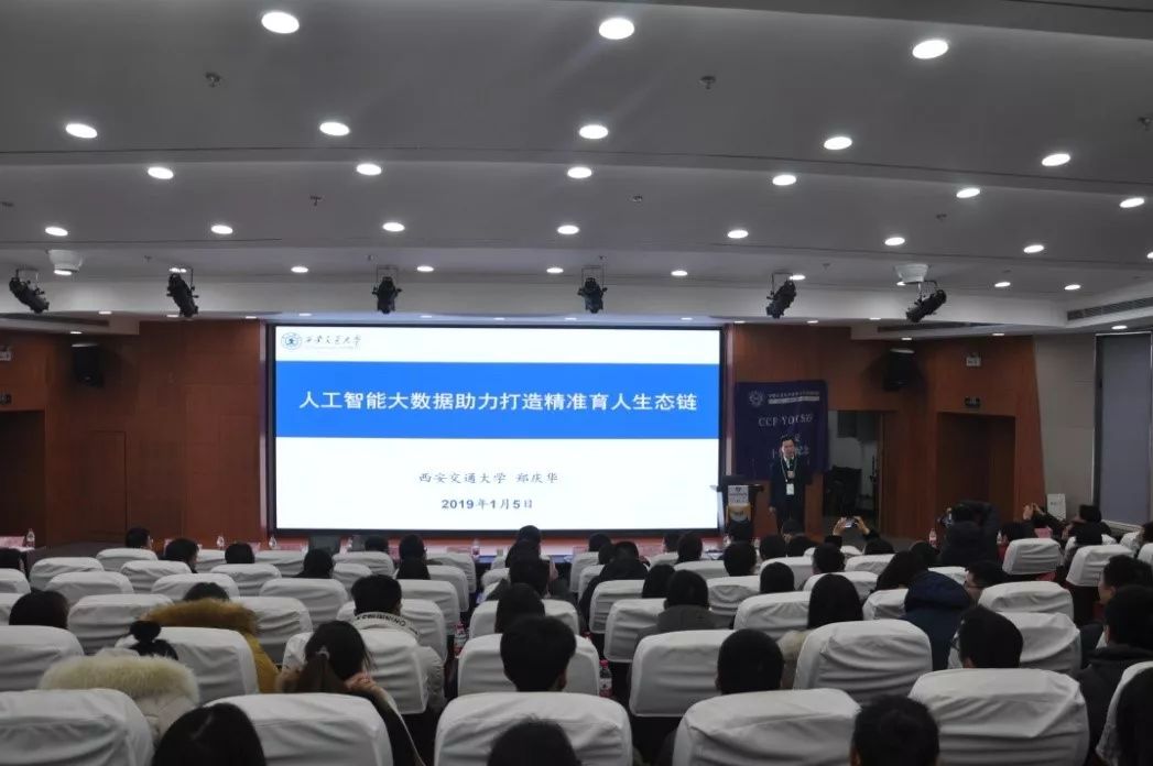 郑庆华以“人工智能大数据助力打造精准育人生态链”为题,从大数据人工智能技术在教育教学智慧管理、面向主题的知识图谱构建及教学质量评价与管理手段的科学化等三个方面详细阐述了人工智能大数据与智慧教育的关系,并介绍了西安交通大学在该领域的探索及研究进展,通过建立大数据平台,构建数据精准采集、精准质量评价、精准督导、精准帮扶的“四精”育人新体系,并向与会者演示了教育教学质量实时监控大数据平台。