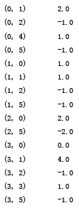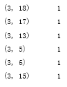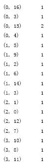 在输出中,括号中的第一个数字是文本的序号,第2个数字是词的序号(注意词的序号是基于所有的文档的),第三个数字就是词频。