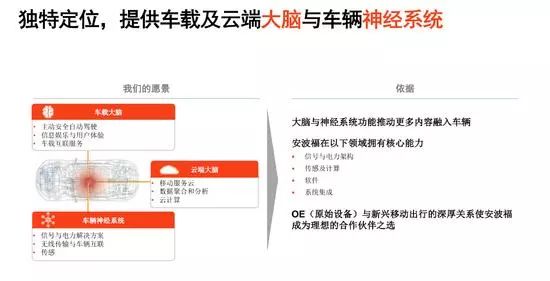 杨晓明称,安波福在为汽车提供大脑与神经系统解决方案方面具有独特的技术优势,是当前目前唯一一家可以同时提供大脑和神经系统及其集成的公司。
