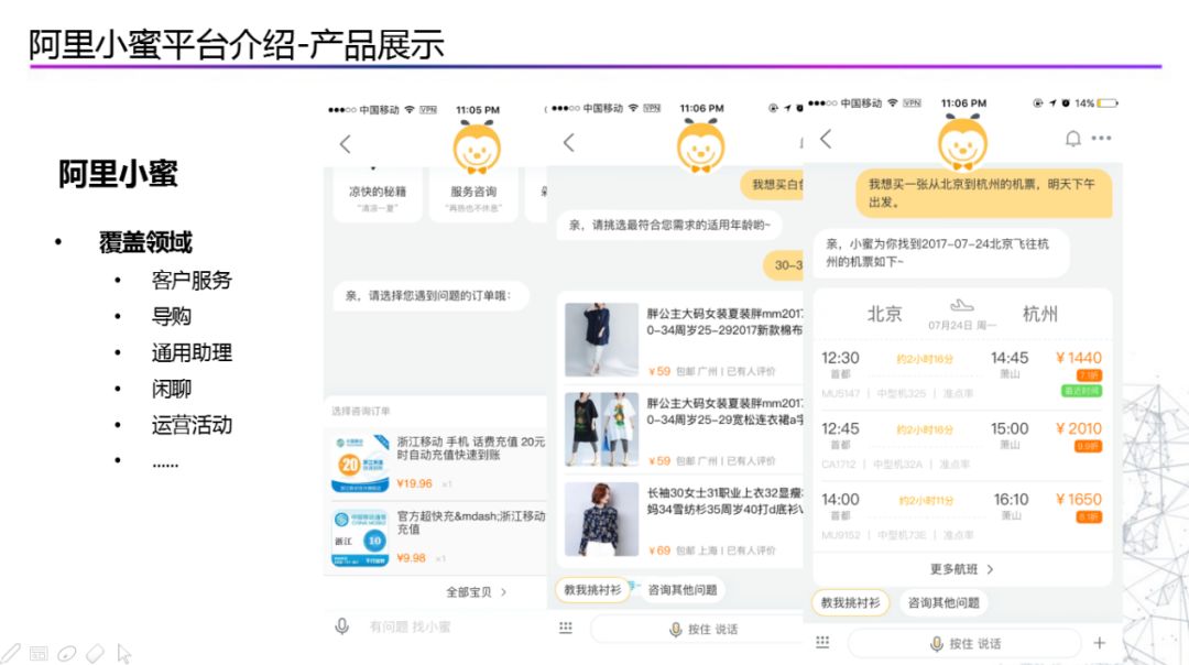 意图识别是机器人识别的第一个环节,阿里小蜜有三大场景。