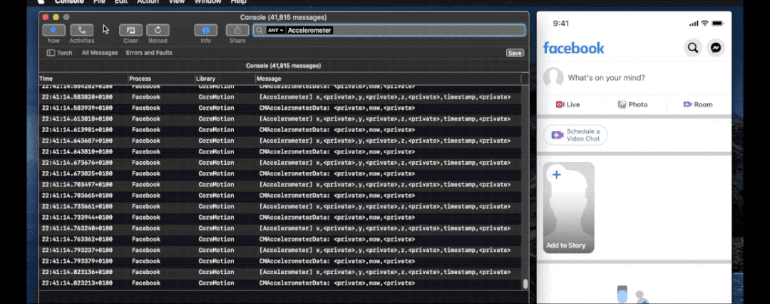 Tommy还实际检测了Facebook等App读取加速度计数据的情况。