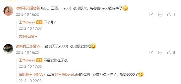 该博主透露,该机并非搭载此前网间曝光的联发科天玑 8000,而会搭载天玑 9000 旗舰处理器,并且配备 125W 超级快充以及 5000mAh 电池,这个组合可以让电池 3 分钟闪充 33% 电量,配置非常强悍。屏幕方面,按照此前的消息称,realme GT Neo3 将配备一块 6.62 英寸的 FHD 分辨率 AMOLED 直屏,三星 E4 发光材料,且支持 120Hz 高刷新率。