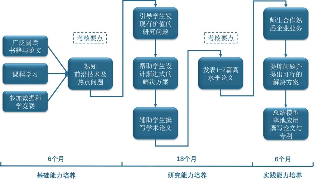 到了研一下学期,就要开始进入数据科学领域的研究工作,需要一年半左右的时间培养学生研究能力。希望通过一年半的时间,完整做1-2个研究工作,发表1-2篇高水平学术论文或申请专利。