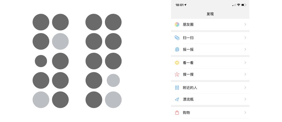 基于格式塔原理,人们更倾向于把靠近的事物视为一组。在UI设计中也同样的,元素内容之间的距离越近,越易被视为同一组。靠近原则优先于对比,即内容信息的大小、颜色、形式都不一样,但只要他们足够靠近,也会被视为一组。