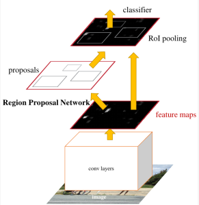 Fast-RCNN之后的问题已经非常清晰,就是我们能不能把region proposal部分也放到GPU上?rbg大神给的答案当然又是yes,于是有了Faster-RCNN,出现了一个end-to-end的CNN对象检测模型。作者提出,网络中的各个卷积层特征其实可以用来预测类别相关的region proposal,不需要事先执行诸如selective search之类的算法,但是如果简单的在前面增加一个专门提proposal的网络又显得不够elegant,所以最终把region proposal提取和Fast-RCNN部分融合进了一个网络模型,虽然训练阶段仍然要分多步,但是检测阶段非常方便快捷,准确率也与原来的Fast-RCNN相差不多,从此,再也不用担心region proposal提取耗时比实际对象检测还多这种尴尬场景了。