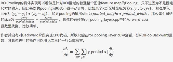 首先需要介绍RCNN系列里的一个核心算法模块,即ROI Pooling。我们知道在ImageNet数据上做图片分类的网络,一般都是先把图片crop、resize到固定的大小(i.e. 224*224),然后输入网络提取特征再进行分类,而对于检测任务这个方法显然并不适合,因为原始图像如果缩小到224这种分辨率,那么感兴趣对象可能都会变的太小无法辨认。RCNN的数据输入和SPPNet有点类似,并不对图片大小限制,而实现这一点的关键所在,就是ROI Pooling网络层,它可以在任意大小的图片feature map上针对输入的每一个ROI区域提取出固定维度的特征表示,保证后续对每个区域的后续分类能够正常进行。