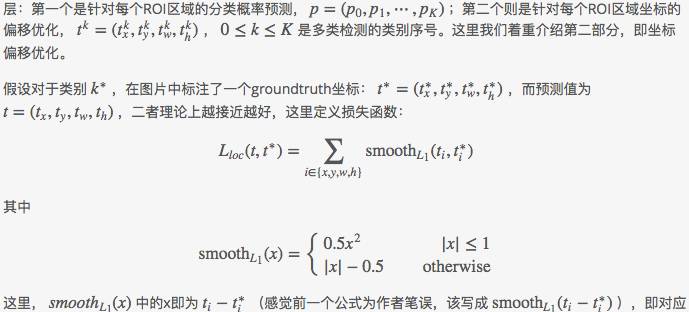 有了ROI Pooling层其实就可以完成最简单粗暴的深度对象检测了,也就是先用selective search等proposal提取算法得到一批box坐标,然后输入网络对每个box包含一个对象进行预测,此时,神经网络依然仅仅是一个图片分类的工具而已,只不过不是整图分类,而是ROI区域的分类,显然大家不会就此满足,那么,能不能把输入的box坐标也放到深度神经网络里然后进行一些优化呢?rbg大神于是又说了"yes"。在Fast-RCNN中,有两个输出