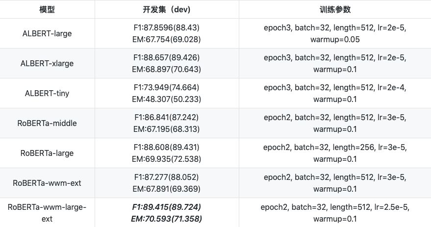 数据量:训练集 (8,016 个段落,26,936 个问题),验证集 (1,000 个段落,3,524 个问题),测试集 (1,000 个段落,3,493 个问题)