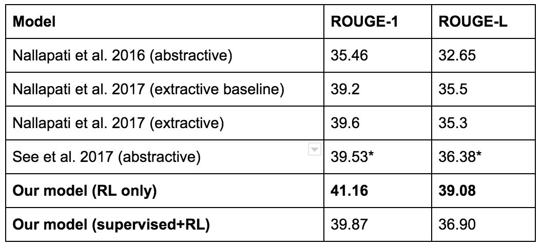 所以,尽管强化学习模型得到了最高的 ROUGE 得分,他们最终还是选择了另外一个模型。