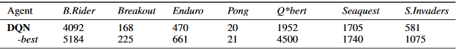 同样,这是一个不公平的比较,因为 DQN 没有执行任何搜索,蒙特卡洛树搜索会执行基于真实世界模型(Atari 模拟器)的搜索。然而,有时候我们并不需要关心比较是否公平,有时候我们只是想让它起作用。如果你对 UCT 的全面评估感兴趣,你可以参考原始论文「The Arcade Learning Environment: An Evaluation Platform for General Agents」。