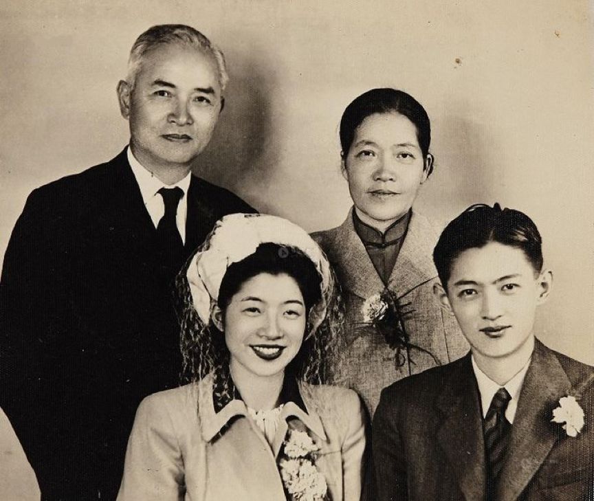 李林与邹承鲁的结婚合影,从左到右分别为李四光、李林、许淑彬、邹承鲁(图源:wikipedia)