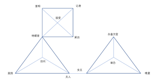 图 1通过篇章“特朗普携夫人访问英国。特朗普与首相共同接受记者采访。女王在白金汉宫举办欢迎晚宴。”构建的篇章事件连通图。