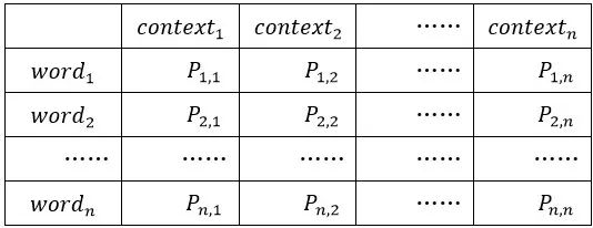 。是先验参数。根据计算出的词对的损失计算梯度更新每个目标领域的动词的向量表示,直到向量表示收敛。之后,构建词语篇章矩阵,如下表所示: