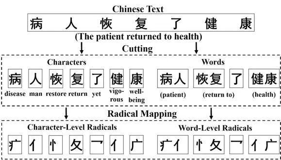 图1:RAFG 获得中文文本四个粒度特征的说明
