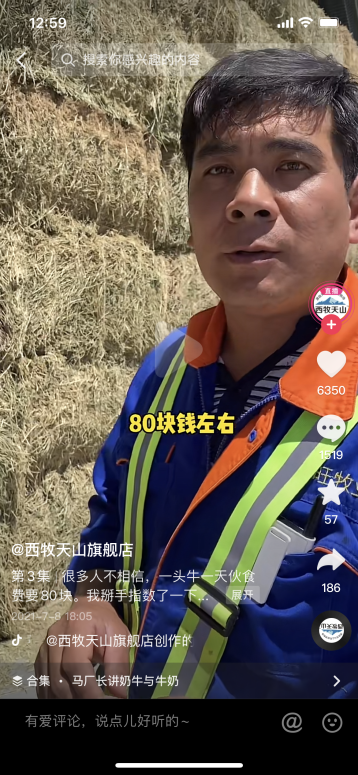 在新疆奶企西牧天山的抖音账号,一位被网友评论为“神似朱时茂”的大哥为大家科普养奶牛和产品的一些相关知识,吸引了不少粉丝围观,也让大家记住了这个品牌。