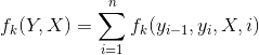 再对转移特征和状态特在各个位置 i 求和有:
