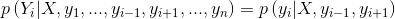 定义 2 :线性链条件随机场 :设 X=(x1,x2,...,xn),Y=(y1,y2,...,yn) 均为线性链表示的随机变量序列,若在给定随机变量序列 X 的条件下,随机变量序列 Y 的条件概率分布 P(Y|X) 满足马尔科夫性: