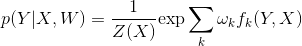 我们把 f 统称为特征函数,ω 是权值,是 CRF 模型要求解的参数。