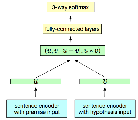 一个用于对 Sentence Natural Language Inference 进行学习的有监督的句子嵌入模型(InferSent)。此图来自 A.Conneau 等人所著的「Supervised Learning of Universal Sentence Representations from Natural Language Inference Data」。