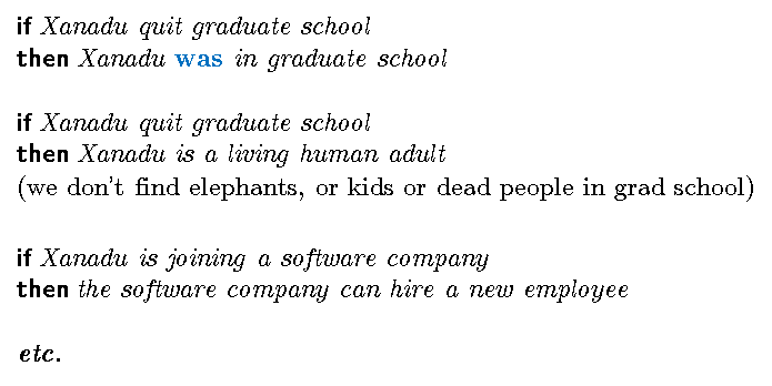 以上对语义的理解不会是可能、大致正确,而是非常确定的绝对正确。换句话说,我们必须从对上述问题的多种可能解释中得出唯一一种含义,根据常识知识,推出提问者问题背后的想法。总而言之,对普通口语的真正理解与单纯的文本(或语言)处理是完全不同的问题。在文本(或语言)处理中,我们可以接受近似正确的结果——结果在可接受的概率下也是正确的。
