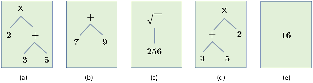 上图中所有表达式的值都是 16,在某种意义(它们的值)上来说是相等的,但这只是属性之一。事实上,上面的表达式还有其他几个属性,比如语法结构(为什么 a 和 d 是不同的)、运算符的数量等。其中值只是一个属性,可以称为扩展(extension),而所有属性的集合是 intension。在应用科学(工程、经济学等)中,我们可以认为这些对象是相等的,如果它们在值上是相等的,但在认知中,这种相等是不存在的。举例来说: