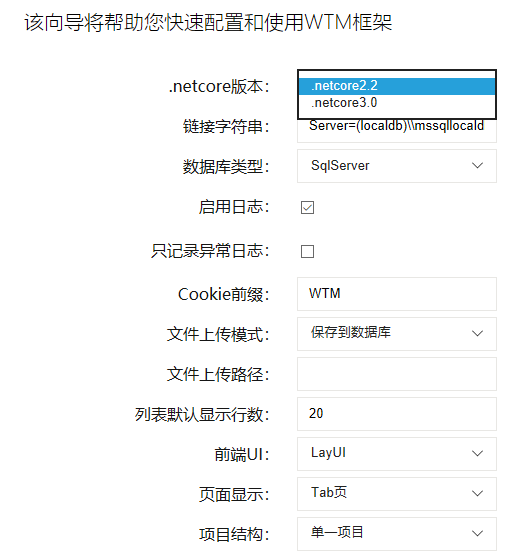 最新发布的WTM2.3.9版本已经支持.NET Core 3.0啦,现在在线生成项目的时候可以选择2.2和3.0两个版本。小伙伴们快来体验吧。