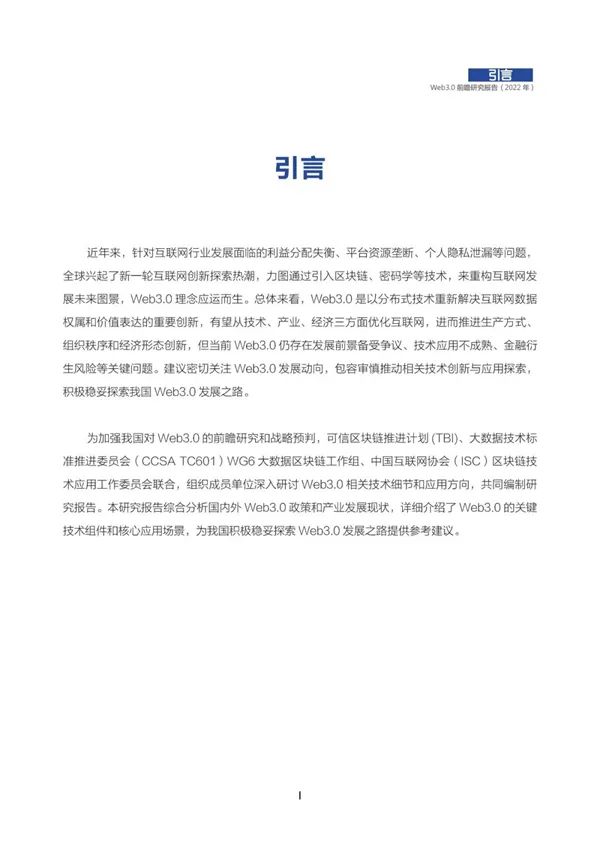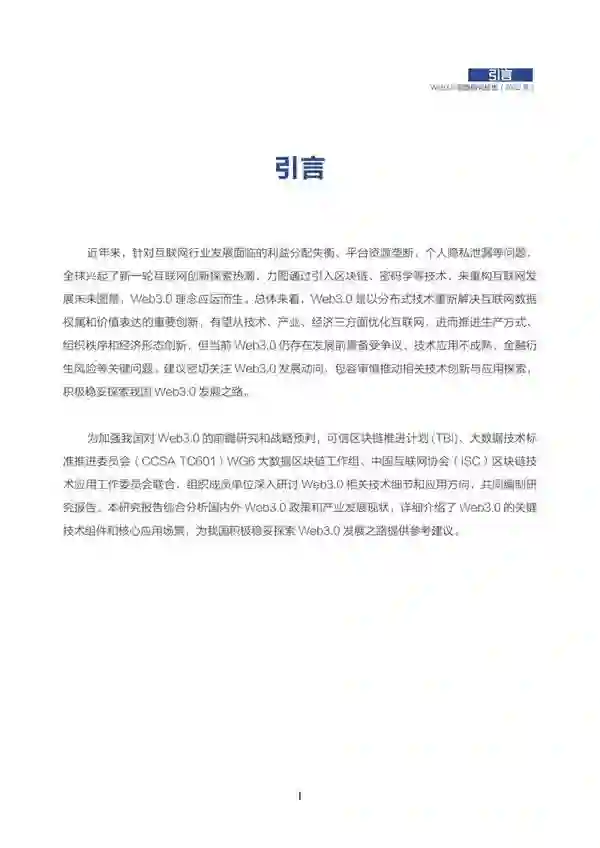 为加强我国对Web3.0的前瞻研究和战略预判,可信区块链推进计划(TBI)、大数据技术标准推进委员会(CCSATC601)WG6大数据区块链工作组、中国互联网协会(ISC)区块链技术应用工作委员会联合,组织成员单位深入研讨Web3.0相关技术细节和应用方向,共同编制研究报告。本研究报告综合分析国内外Web3.0政策和产业发展现状,详细介绍了Web3.0的关键技术组件和核心应用场景,为我国积极稳妥探索Web3.0发展之路提供参考建议。